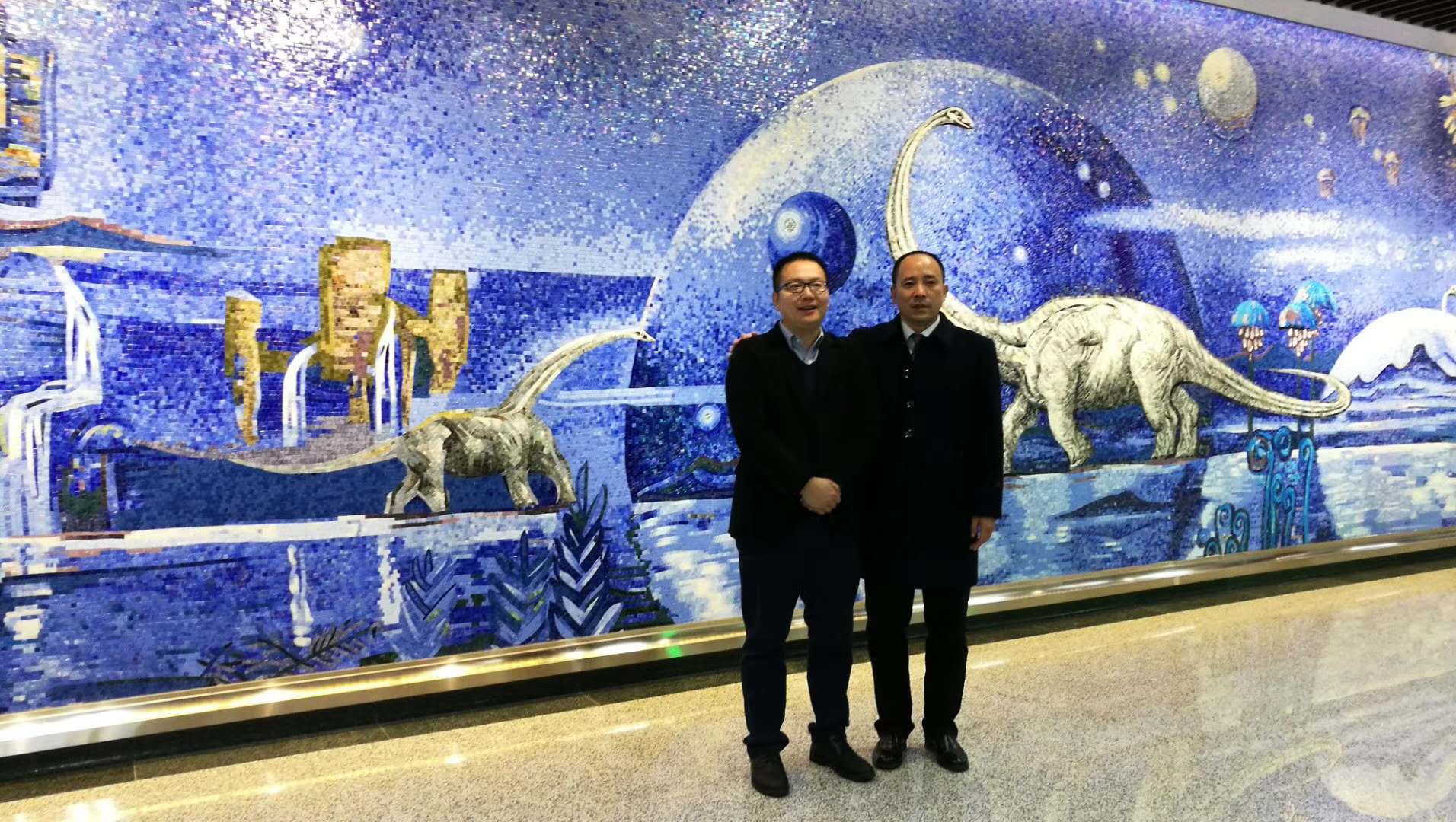 蒙娜麗莎瓷藝在行業內首創“新型多材料復合壁畫”新概念,以大規格瓷板為基礎,多種裝飾材料有機結合的方式,規避了傳統單一材料彩繪壁畫立體感弱,浮雕、雕塑壁畫色彩單一,單材料質感對比不強等問題,結合多年的項目實踐,實現了以陶瓷、石材、馬賽克等材料為主體,復合不銹鋼浮雕、鍛銅浮雕、砂巖浮雕、石材浮雕等多種材料,形成了色彩艷麗、材質對比豐富、立體感強等表現力強烈的表達手法。